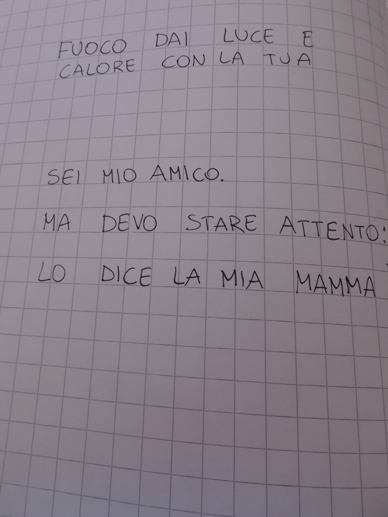 In tema con la programmazione annuale pensai ad un percorso che coinvolgesse i bambini facendoli esercitare nella “scrittura” dei tracciati che comunemente troviamo nei quaderni operativi. I tracciati da me proposti però richiamavano alla mente oggetti e parole relativi ai 4 elementi: acqua, terra, fuoco ed aria. l disegni che troverete “lasciano un po a desiderare” ma sono certa che voi riuscirete a dare una nuova veste grafica al contenuto che vi propongo con le foto delle pagine.