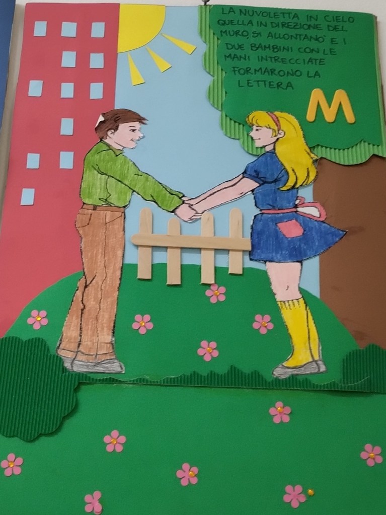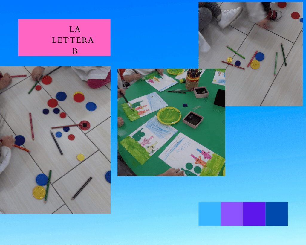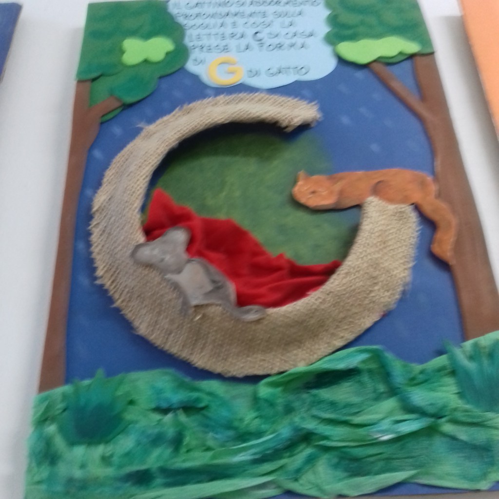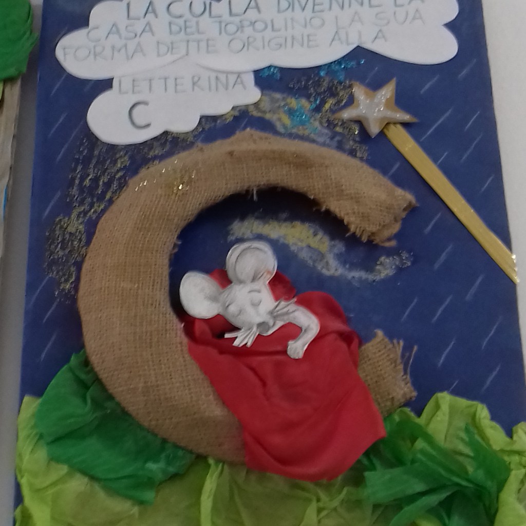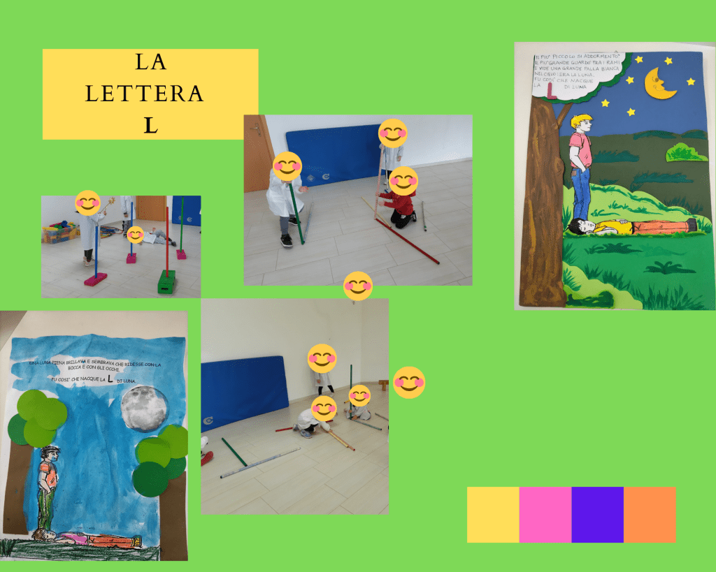 (Di seguito sono riportate le foto dei cartelli che rappresentano le “lettere raccontate” realizzate da una mia collega e gentilmente prestate alla mia sezione e anche le foto che rappresentano tutte le attività svolte per ogni lettera)