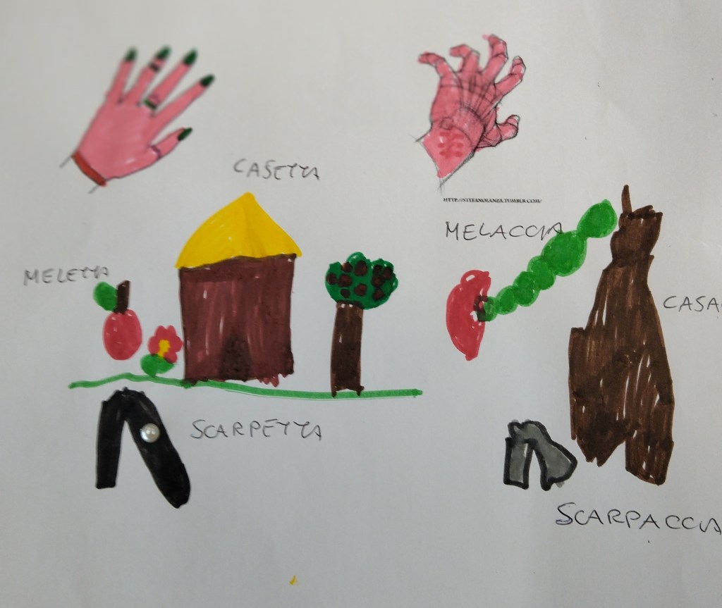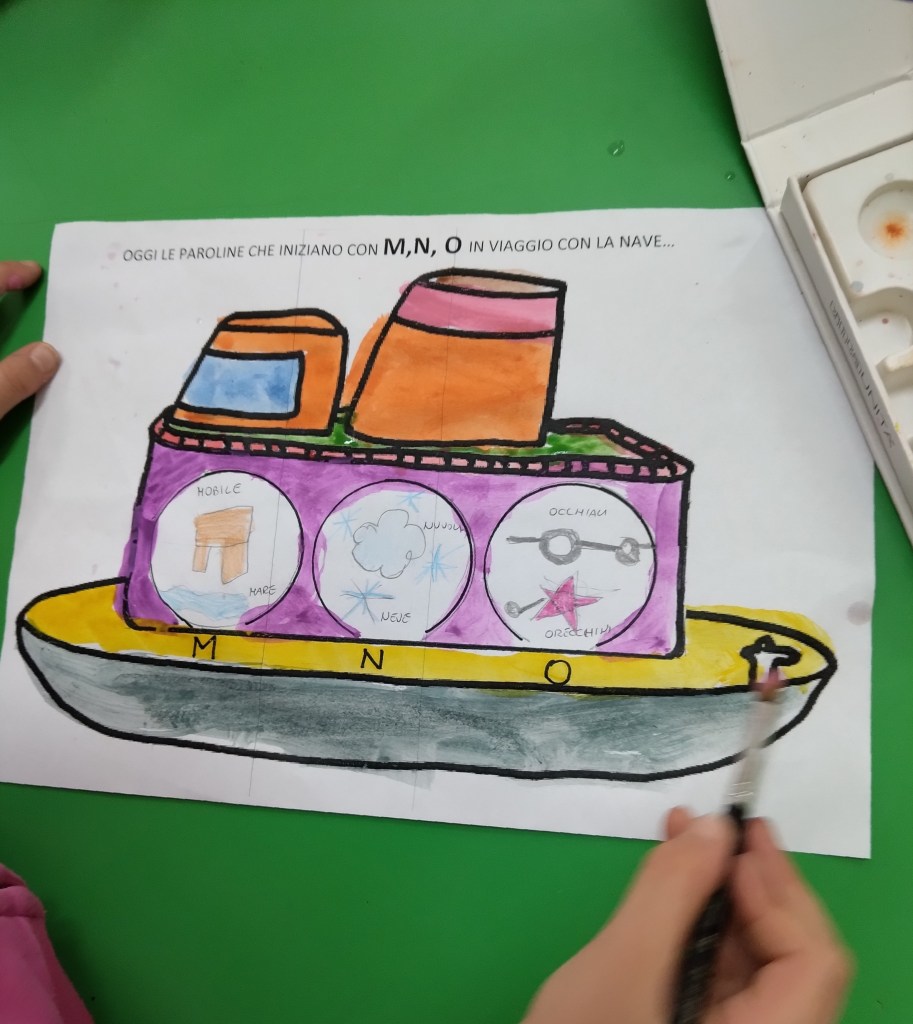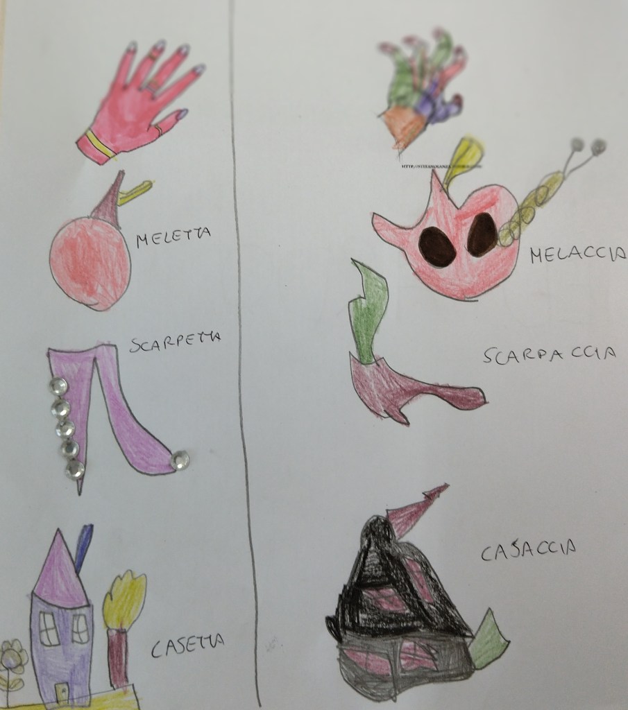 Giocando i bambini vengono a conoscenza di nuovi termini e fanno esperienza con le parole derivate. Segue poi un’attività grafica per rielaborare l’esperienza fatta.